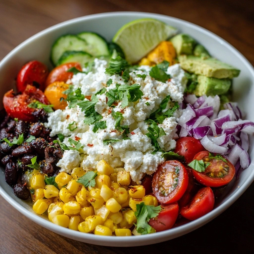 Picture yourself pouring this bowl, the whole kitchen smelling incredible with the scent of lime and cilantro, and the sight of a rainbow of vegetables dancing in a creamy sea. The texture is a paradoxical harmony: silky cottage cheese, buttery avocado, and crisp, juicy tomatoes that burst with every bite. The flavor profile is a bright citrus tang balanced by the earthy richness of black beans and the subtle sweetness of corn. I dare you to taste this and not go back for seconds, because once you try it, the ordinary bowl will never feel the same again.