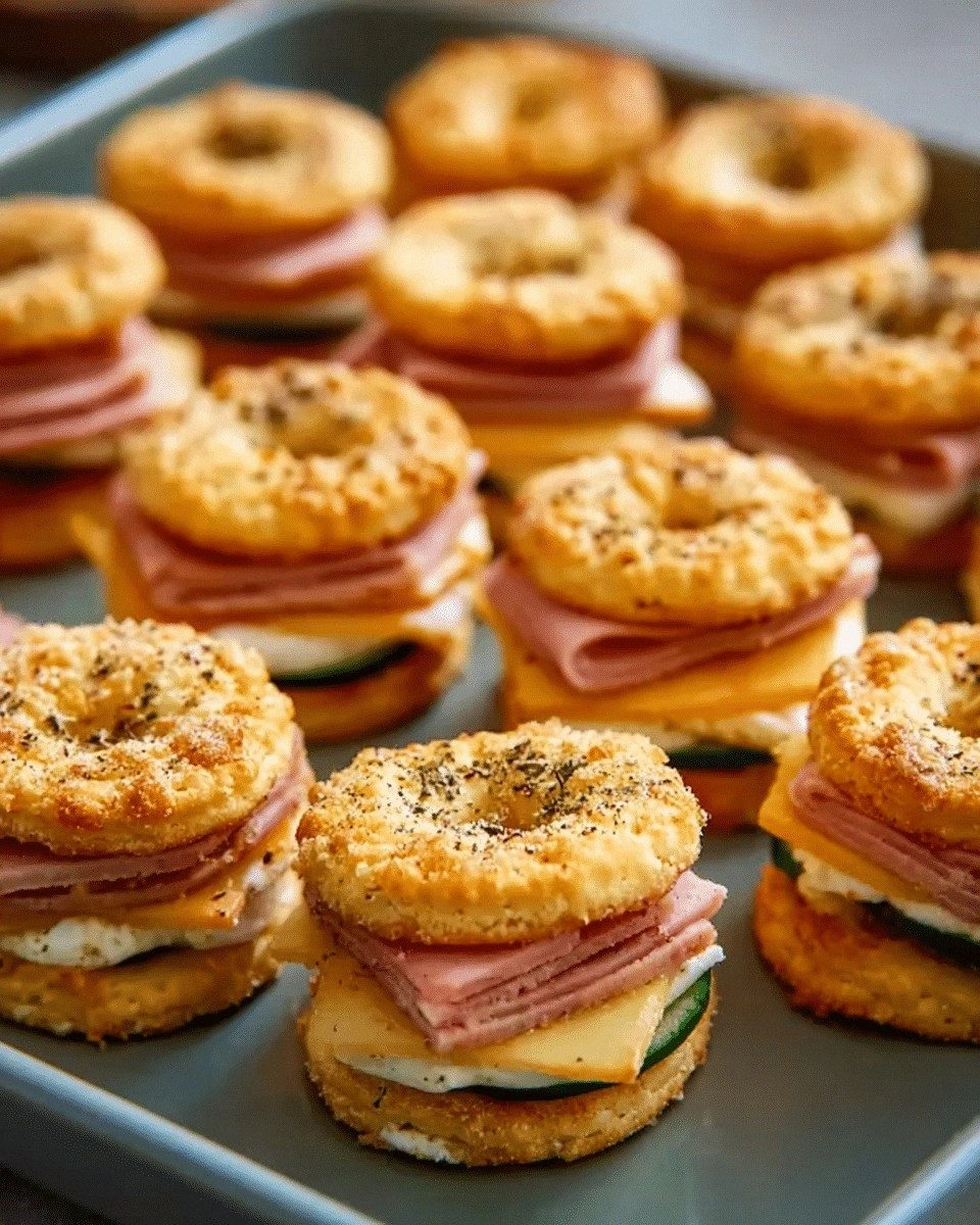 - Step 6: Warm the Sandwiches — Preheat your oven to 375°F. Place the assembled sandwiches on a baking sheet lined with parchment paper. Warm them for 5–7 minutes, or until the cheese has melted and the sauce is slightly bubbly. The heat should bring out the buttery aroma and soften the filling without making the cracker soggy.